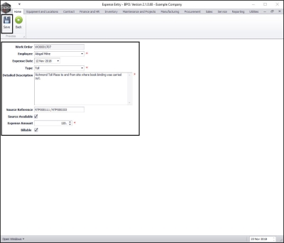 - Employee: This will auto populate with the name of the person currently logged on to the system but you can click on the drop-down arrow and select an alternative employee from the menu if required.