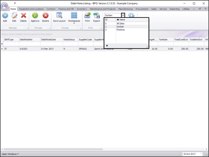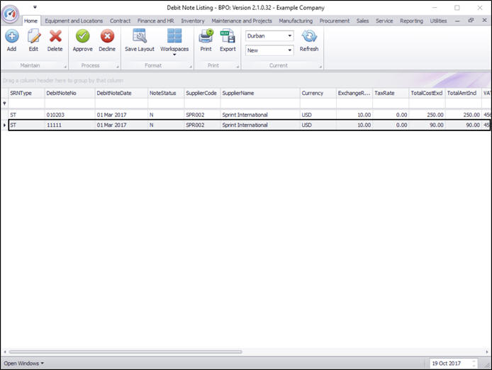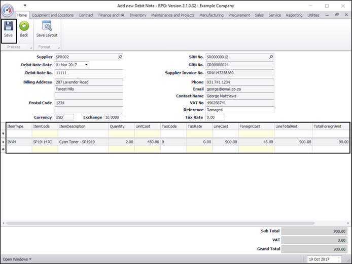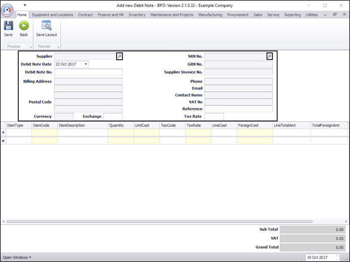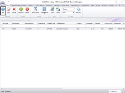 - Items: The Debit Note items will pull through from the Supplier Invoice details.