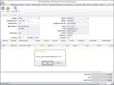 For example, a Debit Note can be raised if your company has purchased goods from a supplier and would like to return the goods for a valid reason or the supplier has sent an invoice to your company for a lower amount than the actual cost.