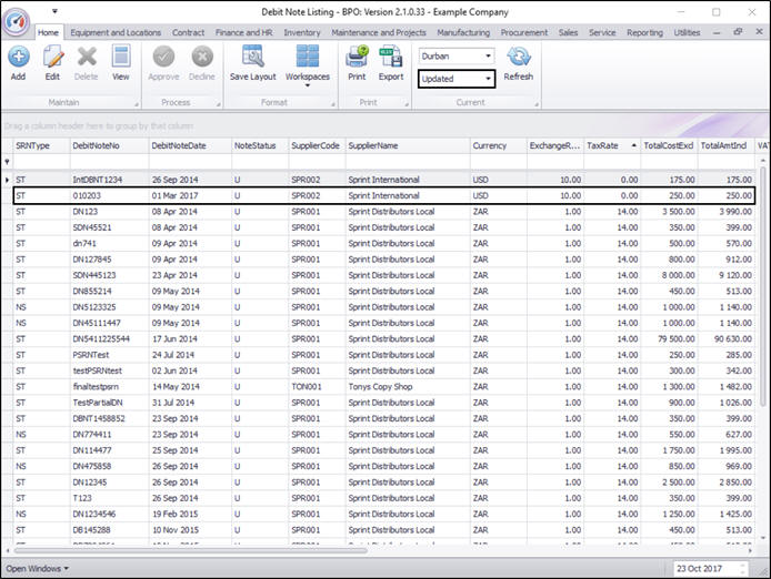 - You can now view the Approved debit note in the Debit Note Listing screen where the status has been set to Updated.