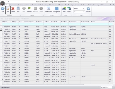 - In the Purchase Requisition Listing screen,