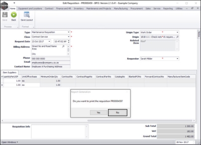 Print Requisition - Yes