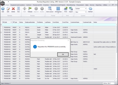 - Requisition No. [ ] saved successfully.