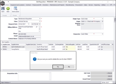 Requisitions - Add, Edit, Delete Item Supplier