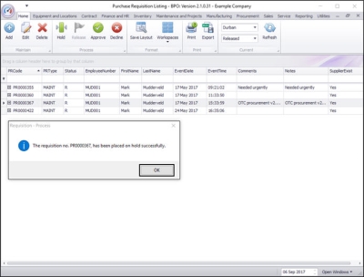 - A Requisition - Process message box will appear informing you that;