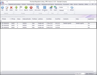 - The Purchase Requisition Listing screen will now only display the requisitions in the Released status awaiting Approval.