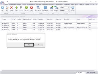 - Are you sure that you want to authorise requisition []?
