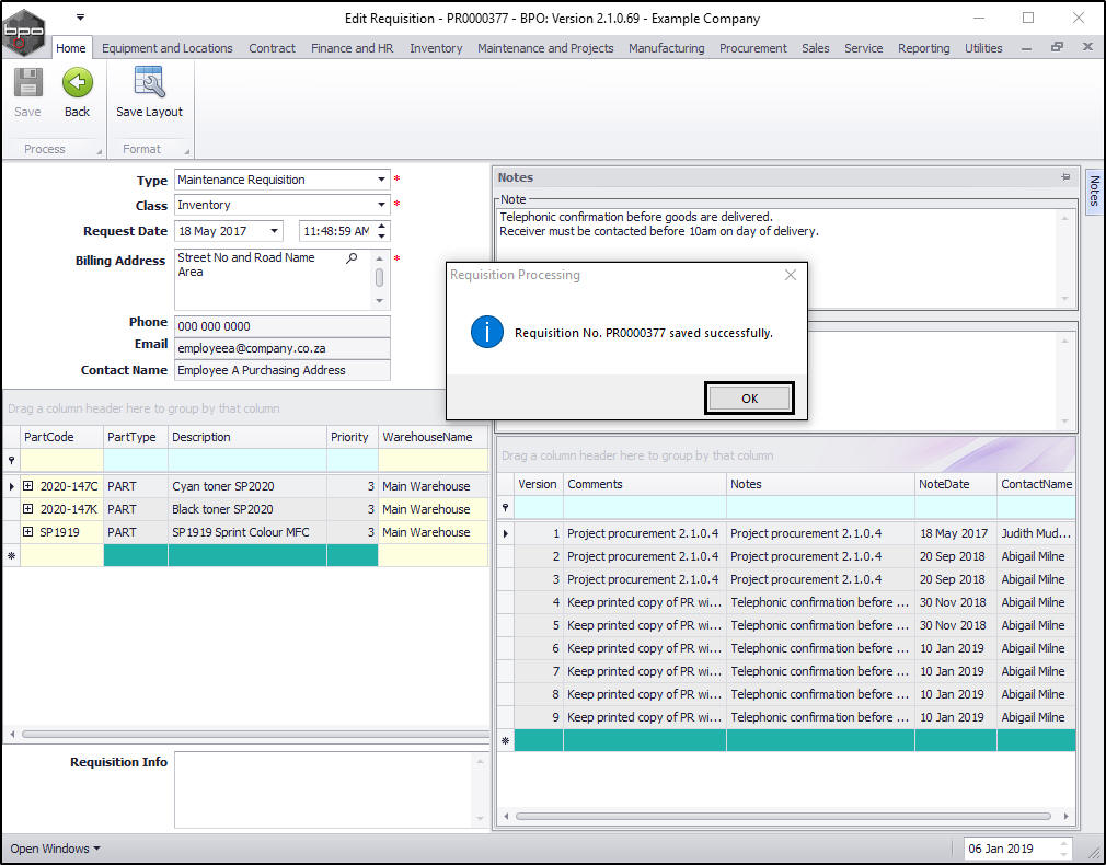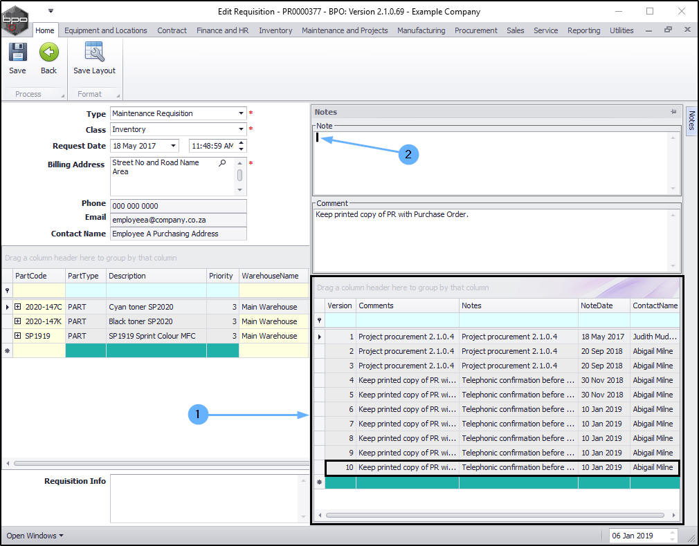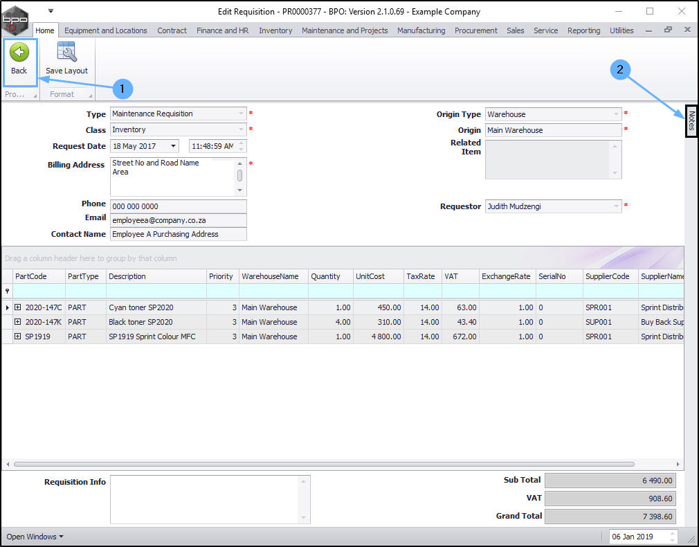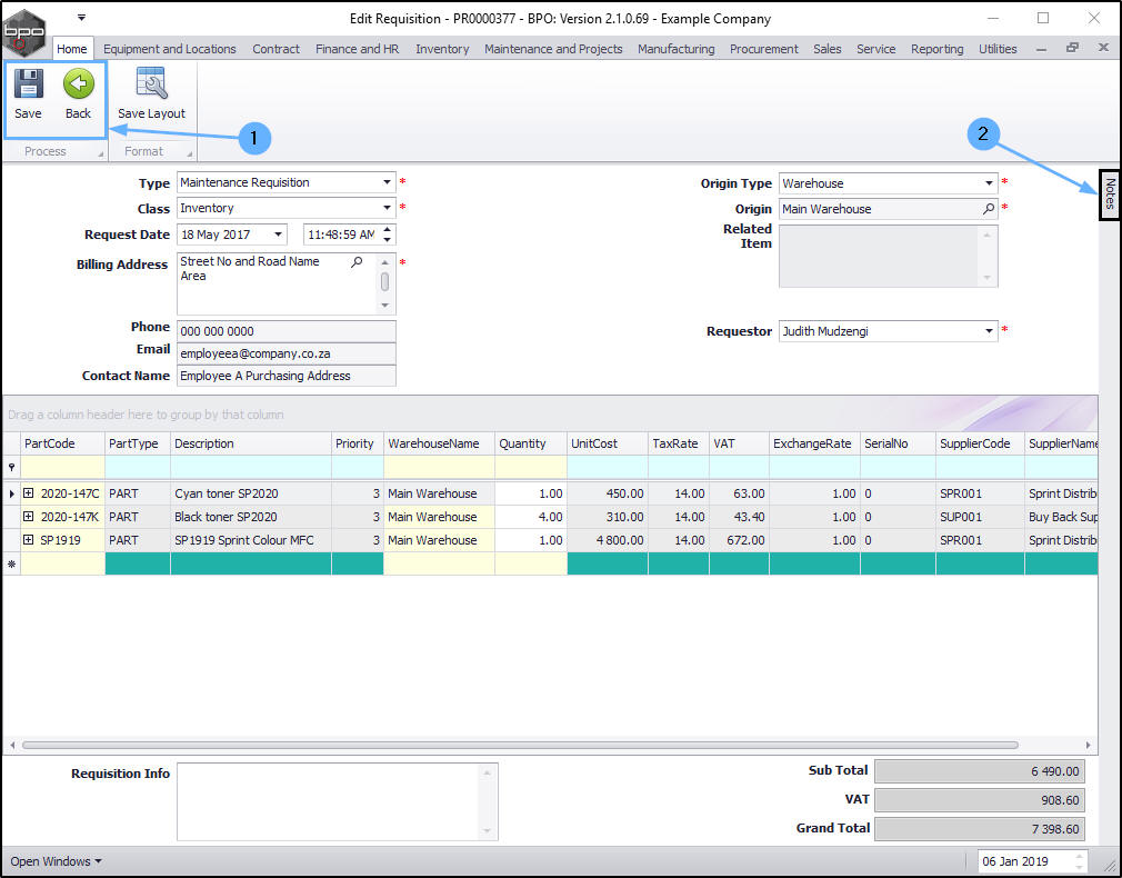 - Notes: These are notes concerning orders to this supplier, which will pull through to the Purchase Order.