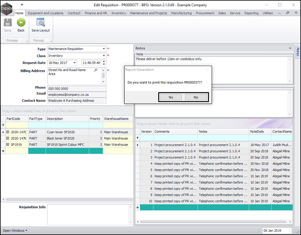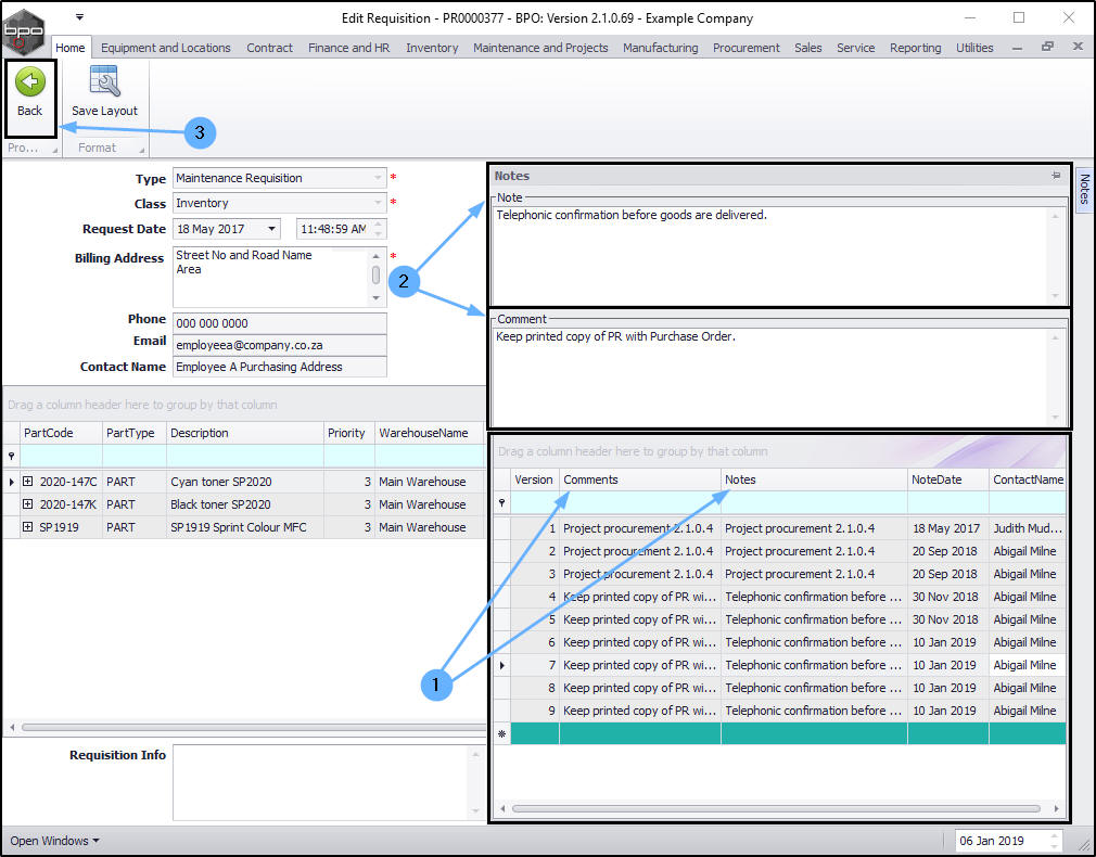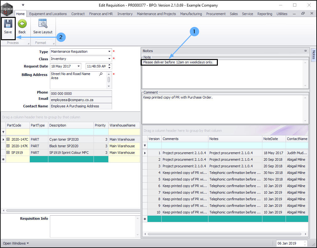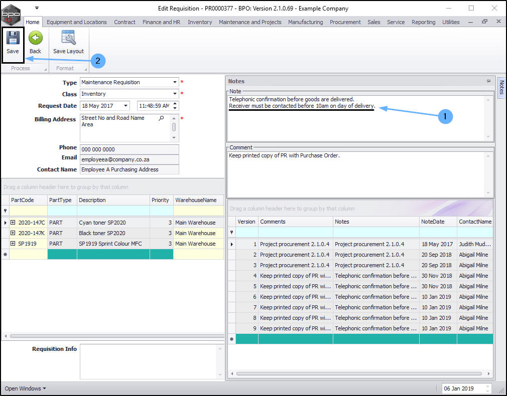 Once you have created your purchase requisition, you may be required to add Notes and / or Comments.