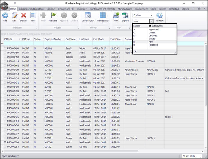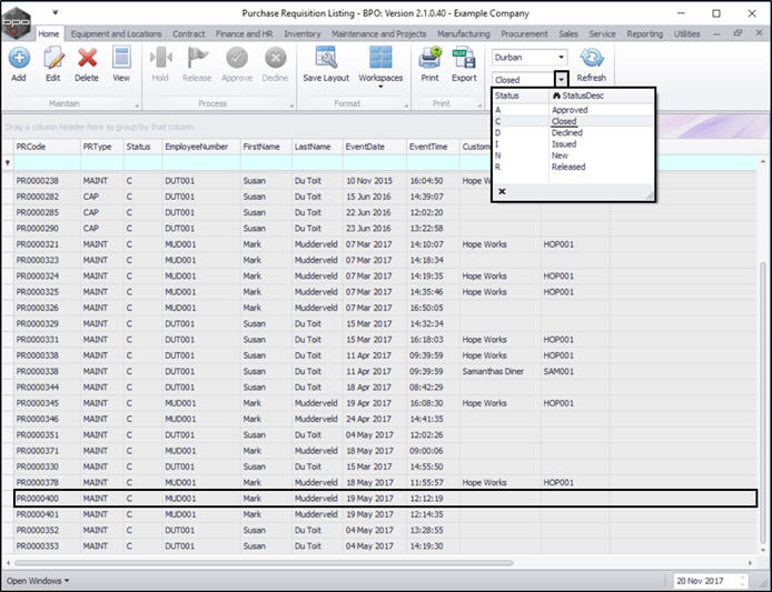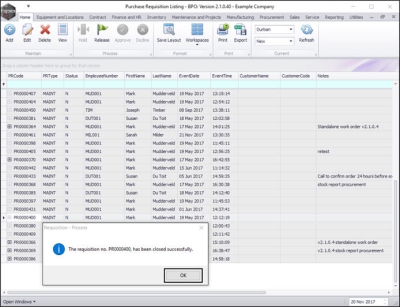 - The deleted requisition can now be viewed in the Purchase Requisition Listing screen where the status is set to Closed.