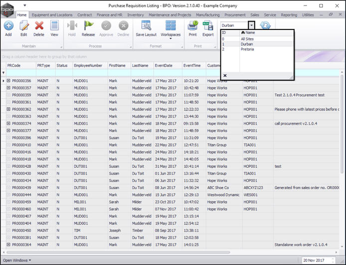 - Requestor: This will populate with the person currently logged on to the system. You can click on the drop-down arrow and select from the menu an alternative person if required.