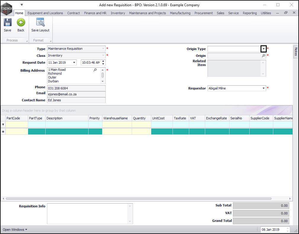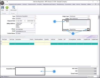 - Requisition Info: Type in any extra information in this text box, if required. This will pull through to the Procurement Report