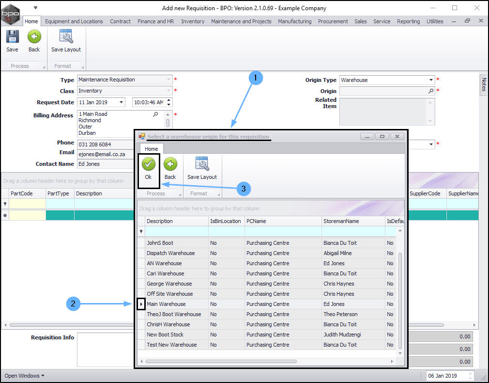 - As Warehouse Type was selected then the Select a warehouse origin for this requisition screen has popped up.