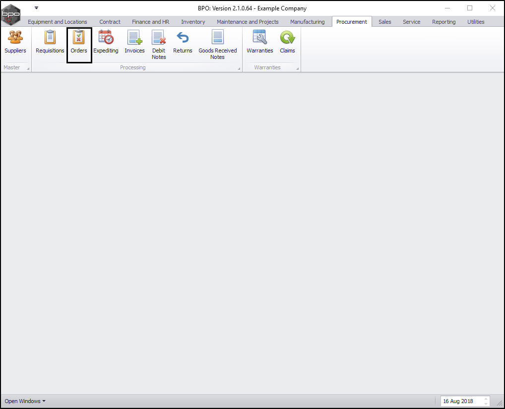 | Ribbon Access: Procurement > Orders |
