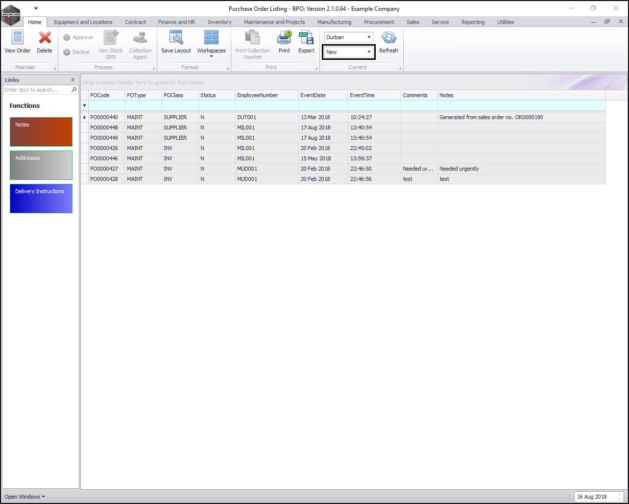 The Purchase Order Listing screen will be displayed.