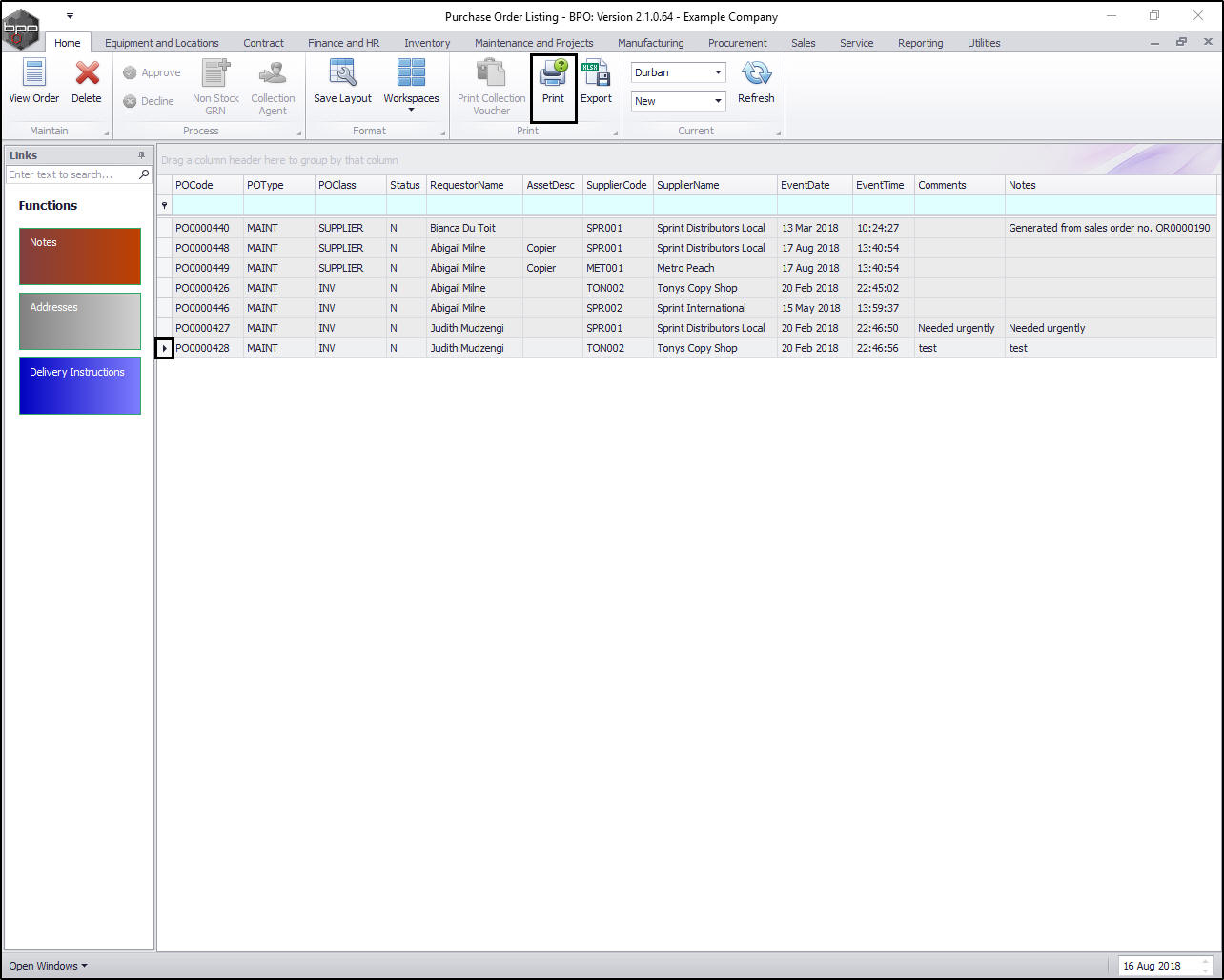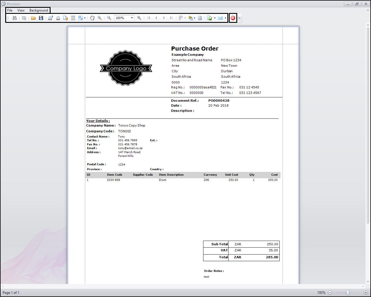 Print Purchase Order