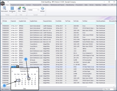 - A drop-down arrow will appear in the Expected date field of the selected purchase order item.