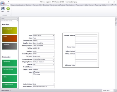 - Supplier Code: Type in the code you wish to use to identify the Supplier.