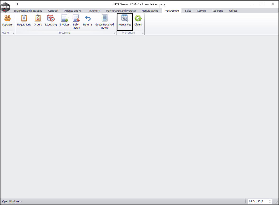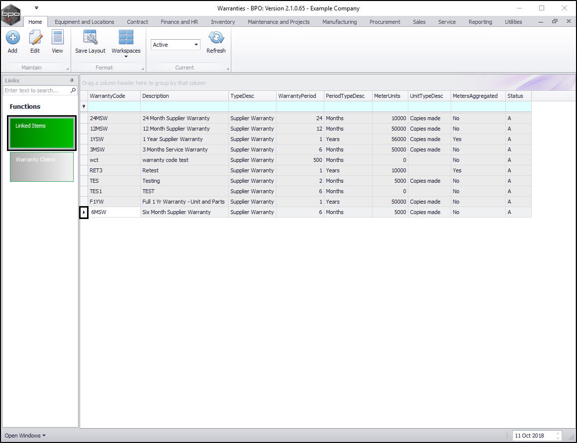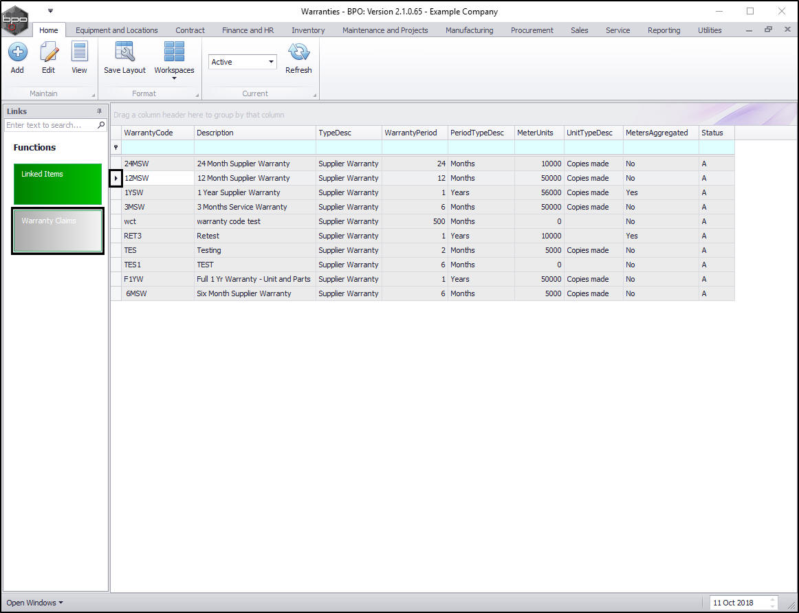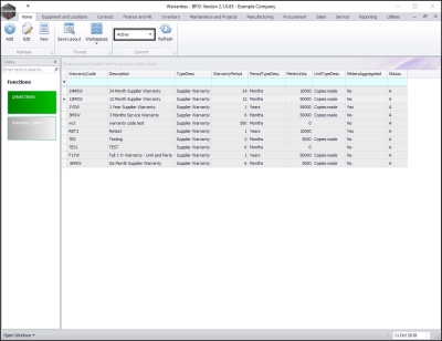 In the Warranties listing screen you can view all the Active and Expired warranties on the system.