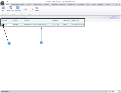 - The Warranties screen will now display a list of the Item Type(s), Code(s) and Description(s) linked to the selected warranty. You can also view the Start Date, Supplier Code and Supplier Name.