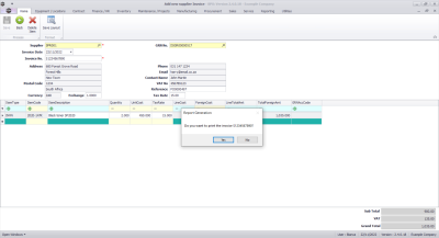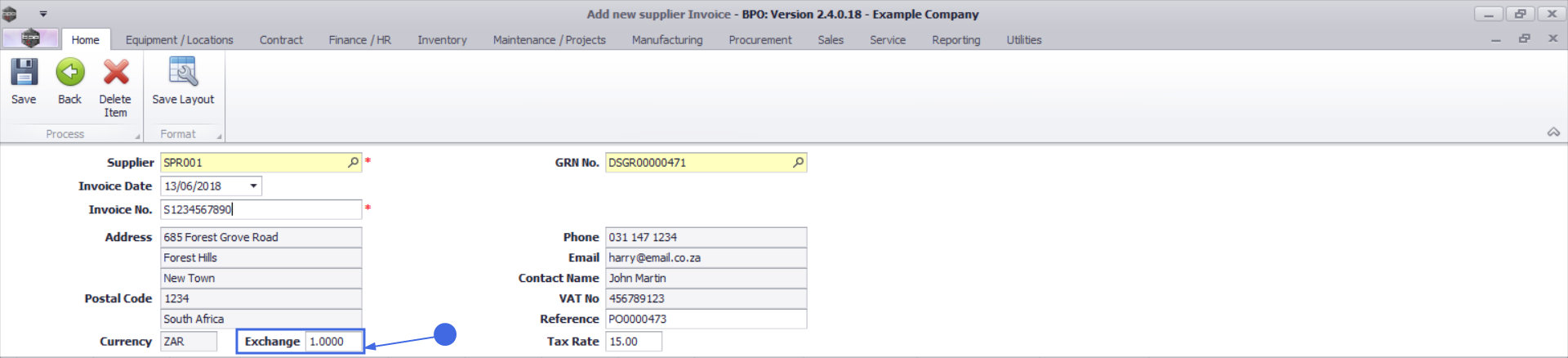 The Supplier Invoice header fields will populate with the Supplier Details and Supplier Invoice Date.