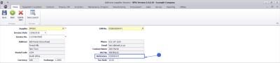 The Reference number is populated with the Reference Number from the Goods Received Note when the GRN is selected for Stock GRNs, which usually the Purchase Order number (if this was not changed manually). For Non Stock GRNs there is no Reference Number field, so the system will fetch an auto-populate this with the orginating Purchase Order number. You can change or add to this reference, if required, by typing into the field.