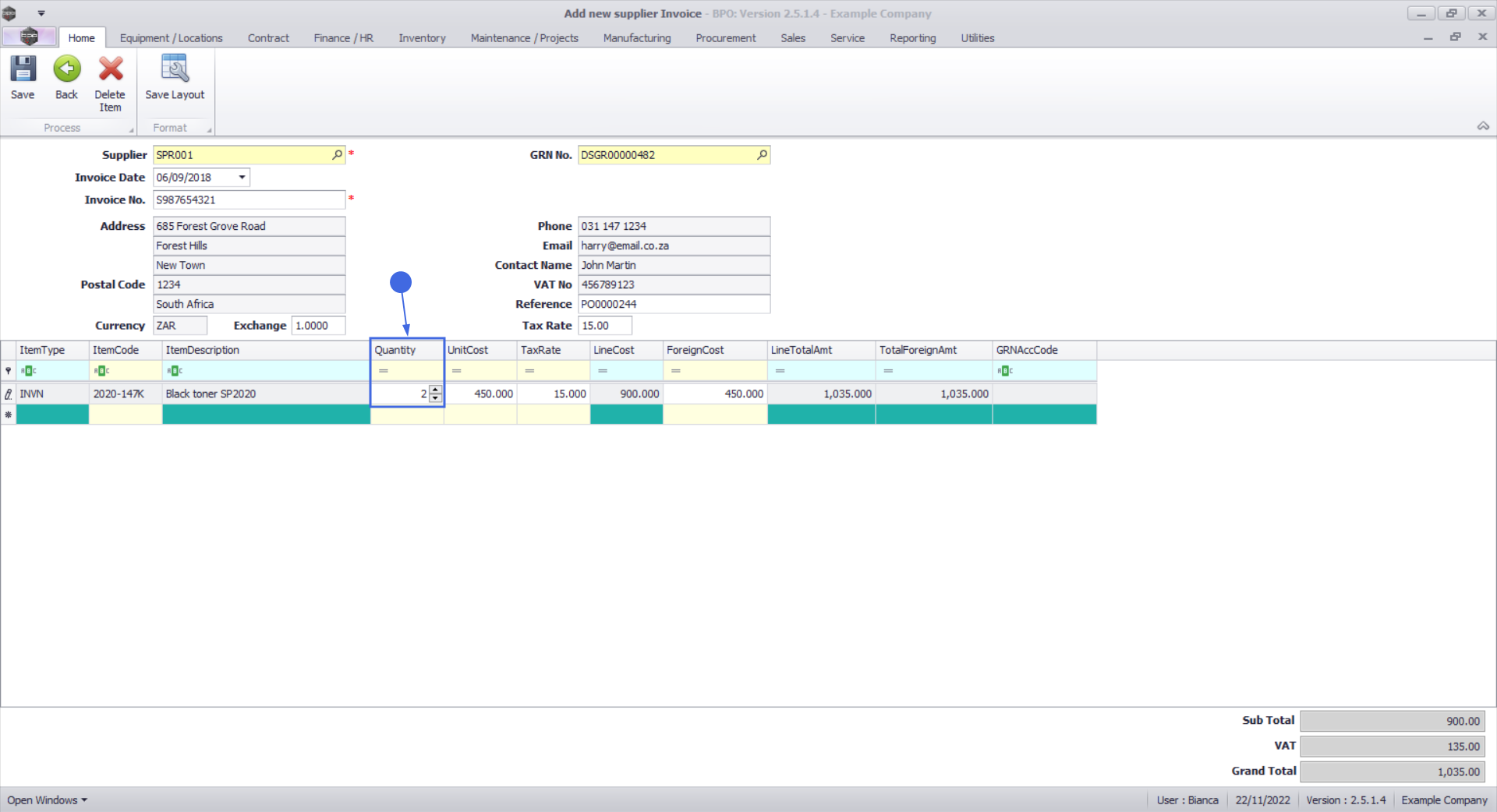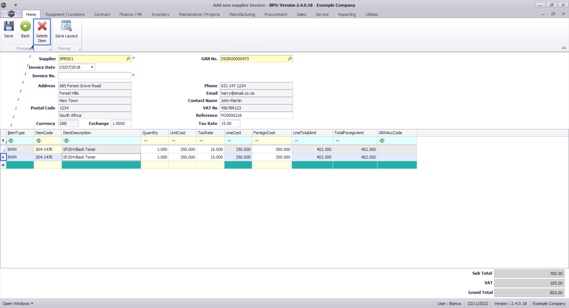 The Supplier Invoice on BPO should match the Invoice from the Supplier, so make sure to check that all items exist and that all quantities and costs are correct.