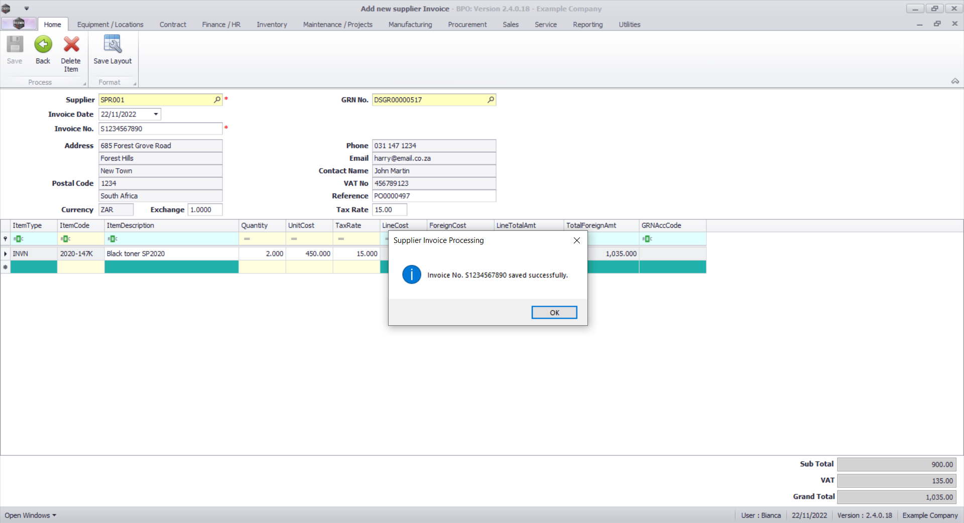 Once you have ensured that all the Supplier Invoice details are correct, you can save.