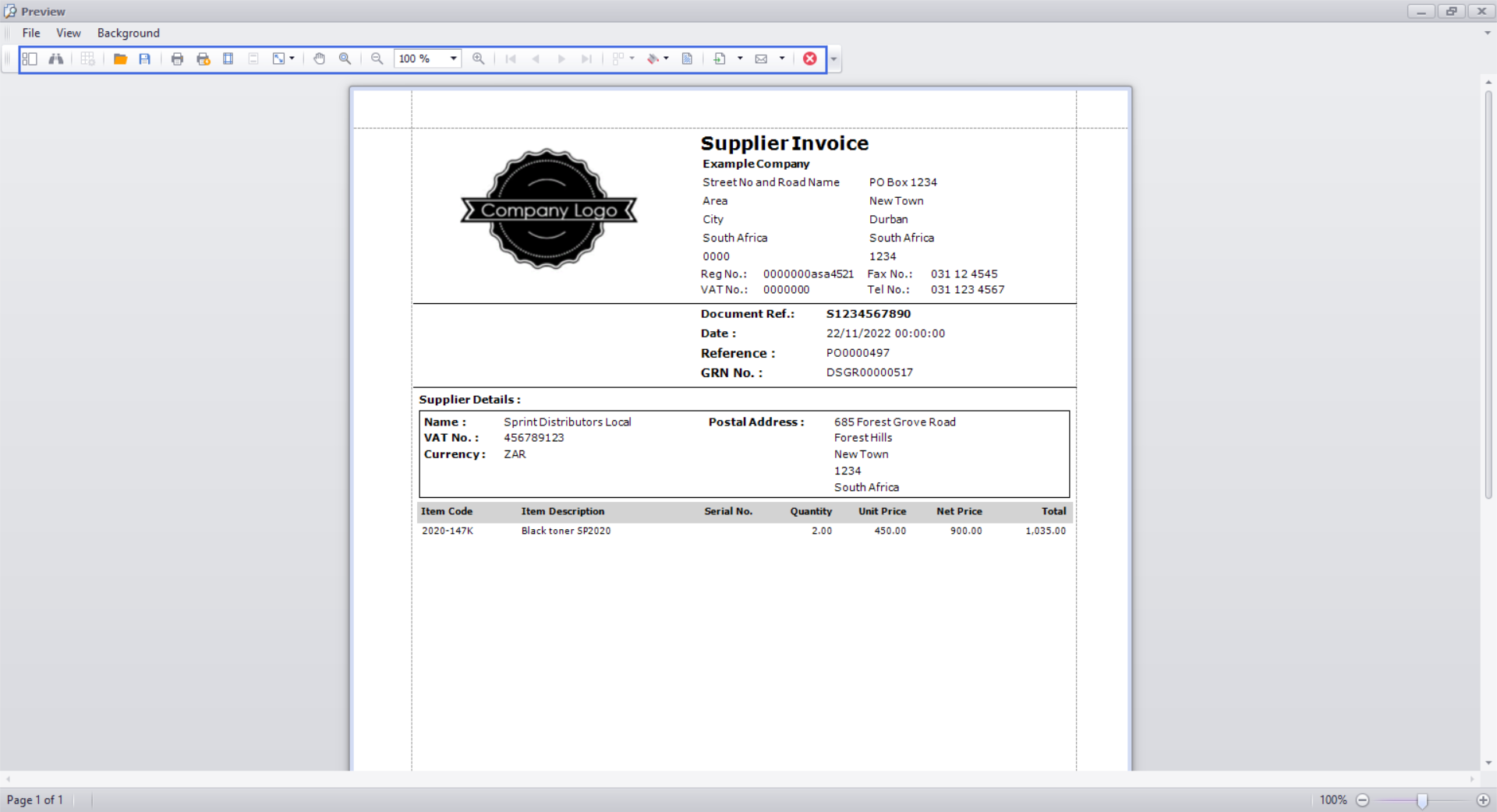 This will populate the GRN No. field and the Supplier Invoice Items and Totals.