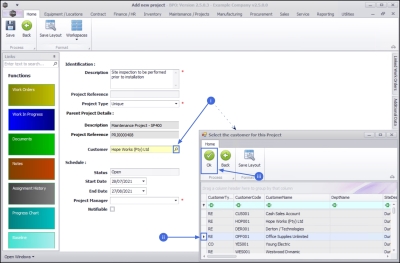 - Click on the search button to display the Select the customer for this Project screen.