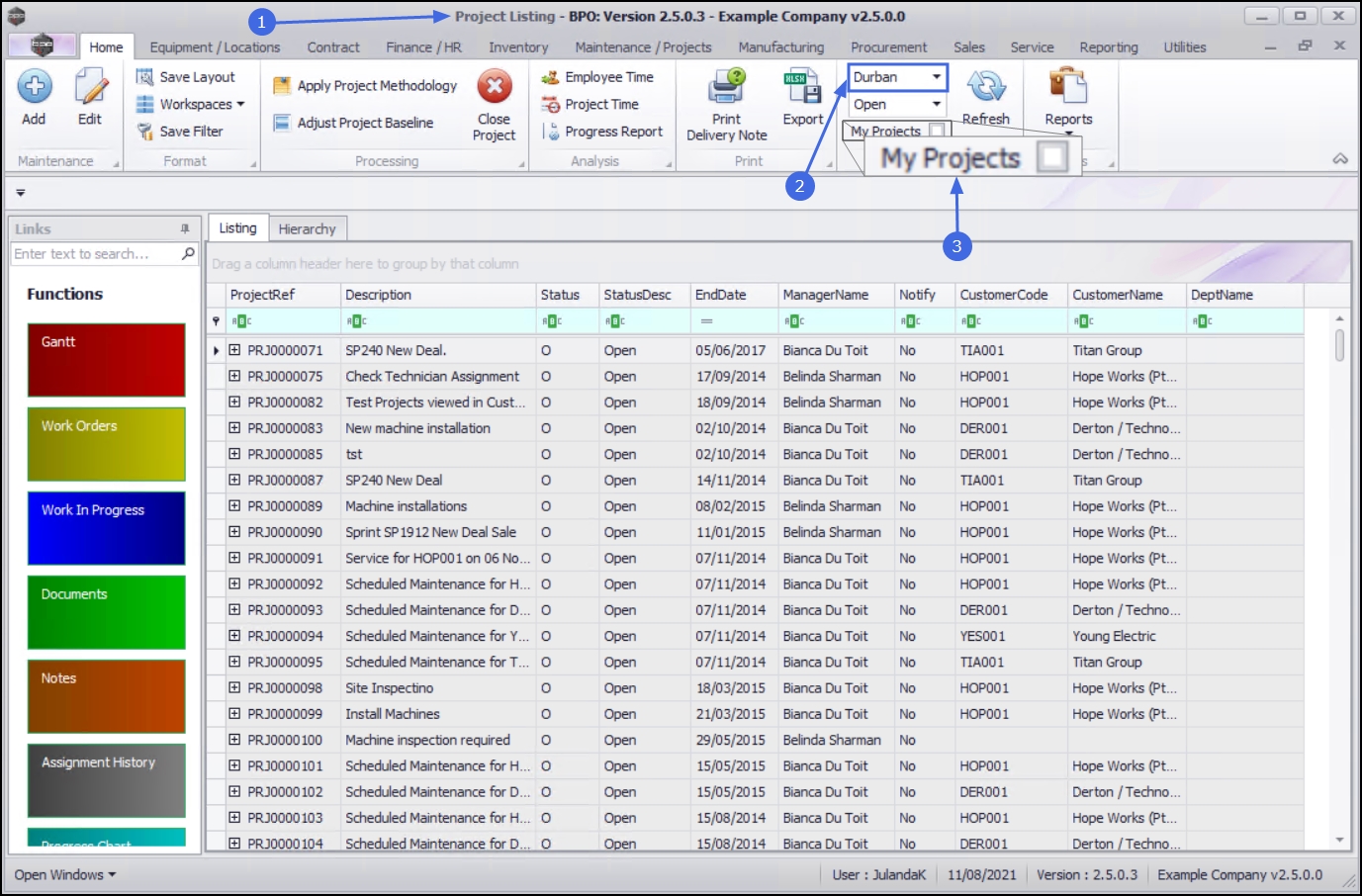 | Ribbon Access: Maintenance / Projects > Projects |