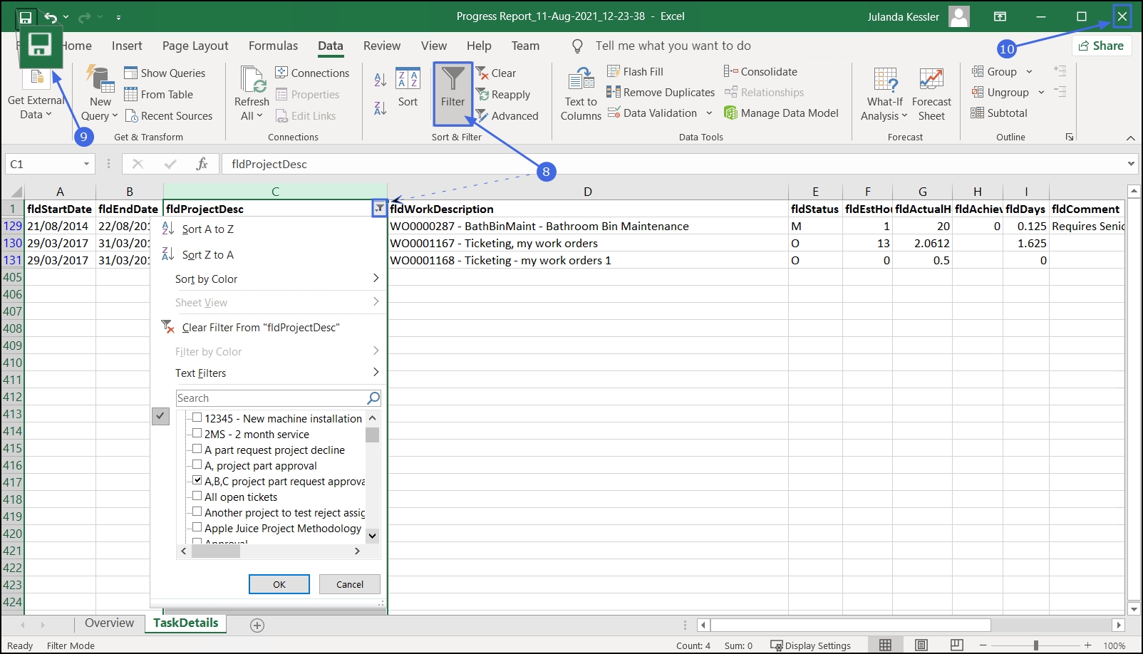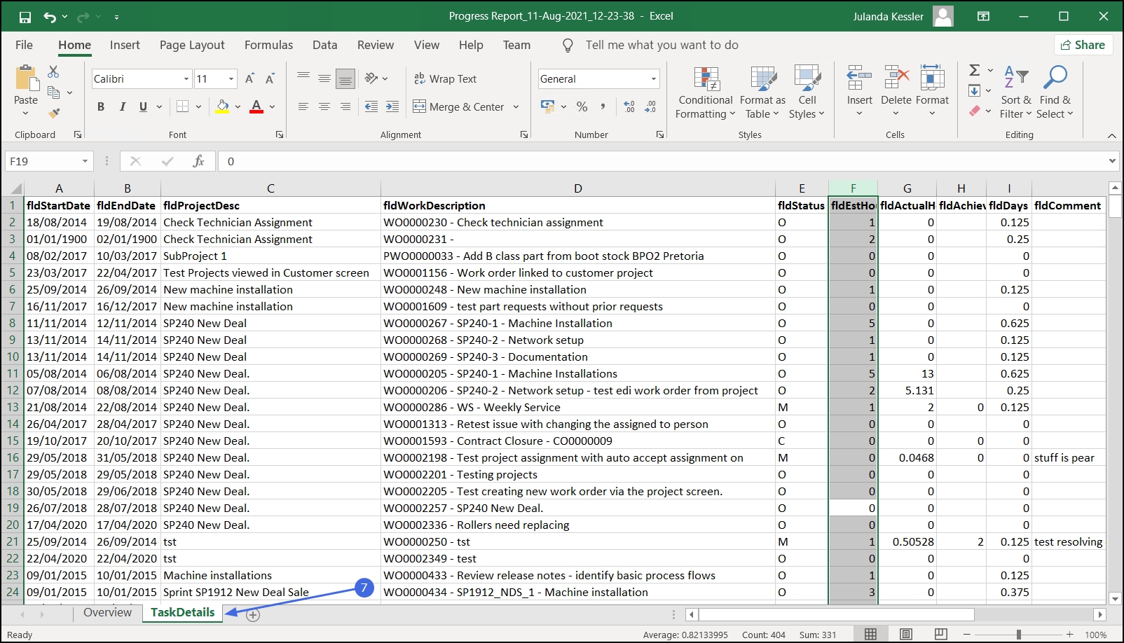 - Give the system a few minutes to generate and exported the Progress Report to Microsoft Excel.