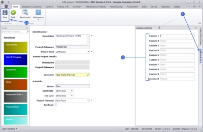 - Any extra information can be added in the Custom 1 - 10 fields. The field names can be re-named to suit your company requirements.