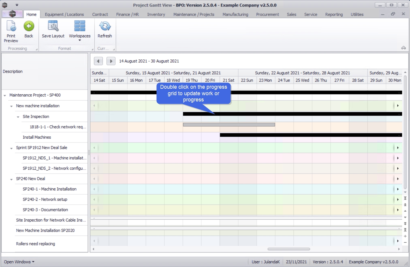 The Gantt chart assists you in the planning and scheduling of your projects.