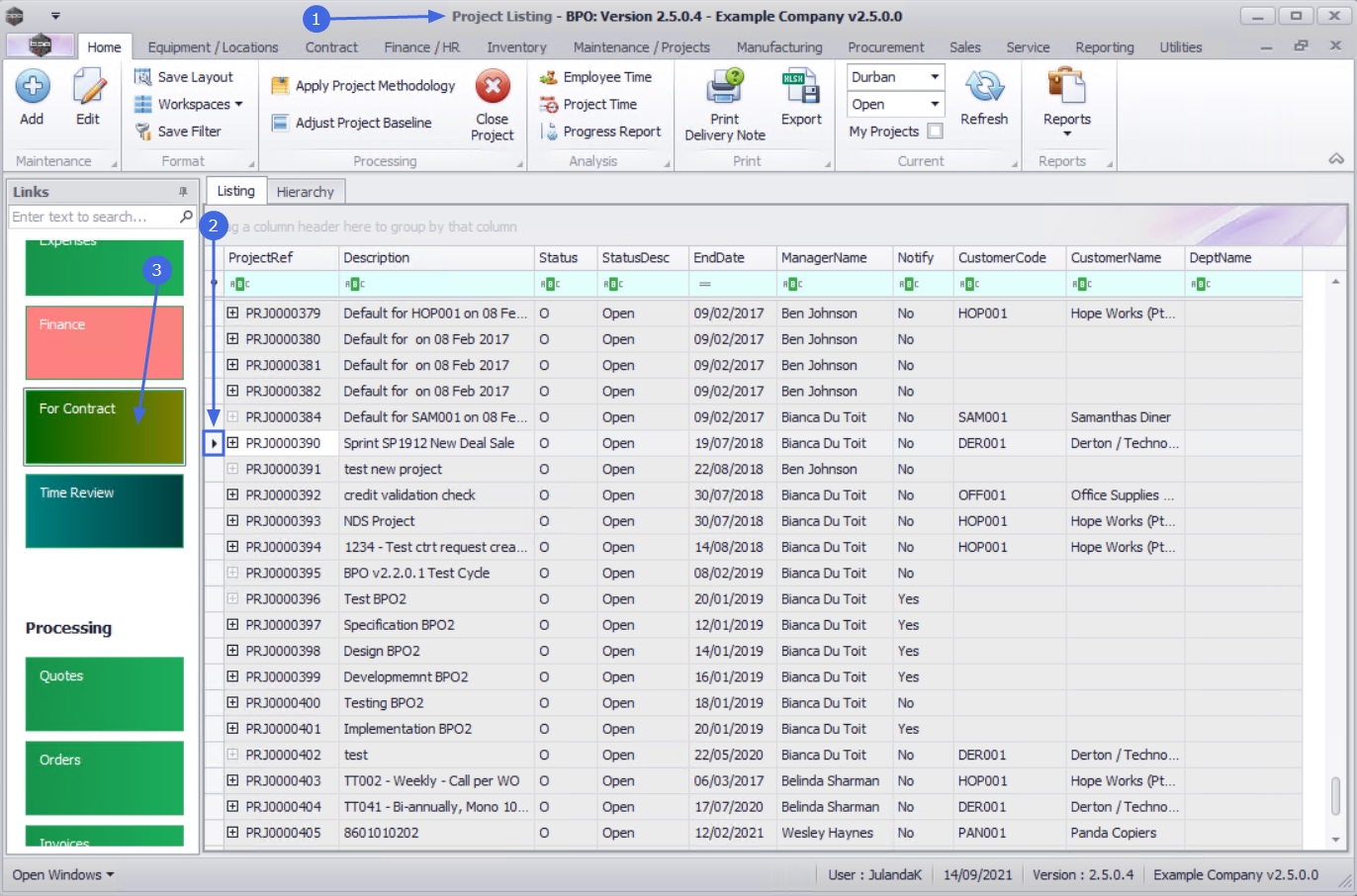 | Ribbon Access: Maintenance / Projects > Projects |