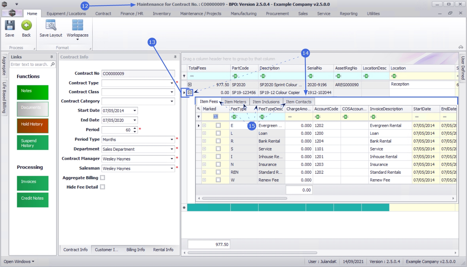 - The Maintenance for Contract No. screen will be displayed.