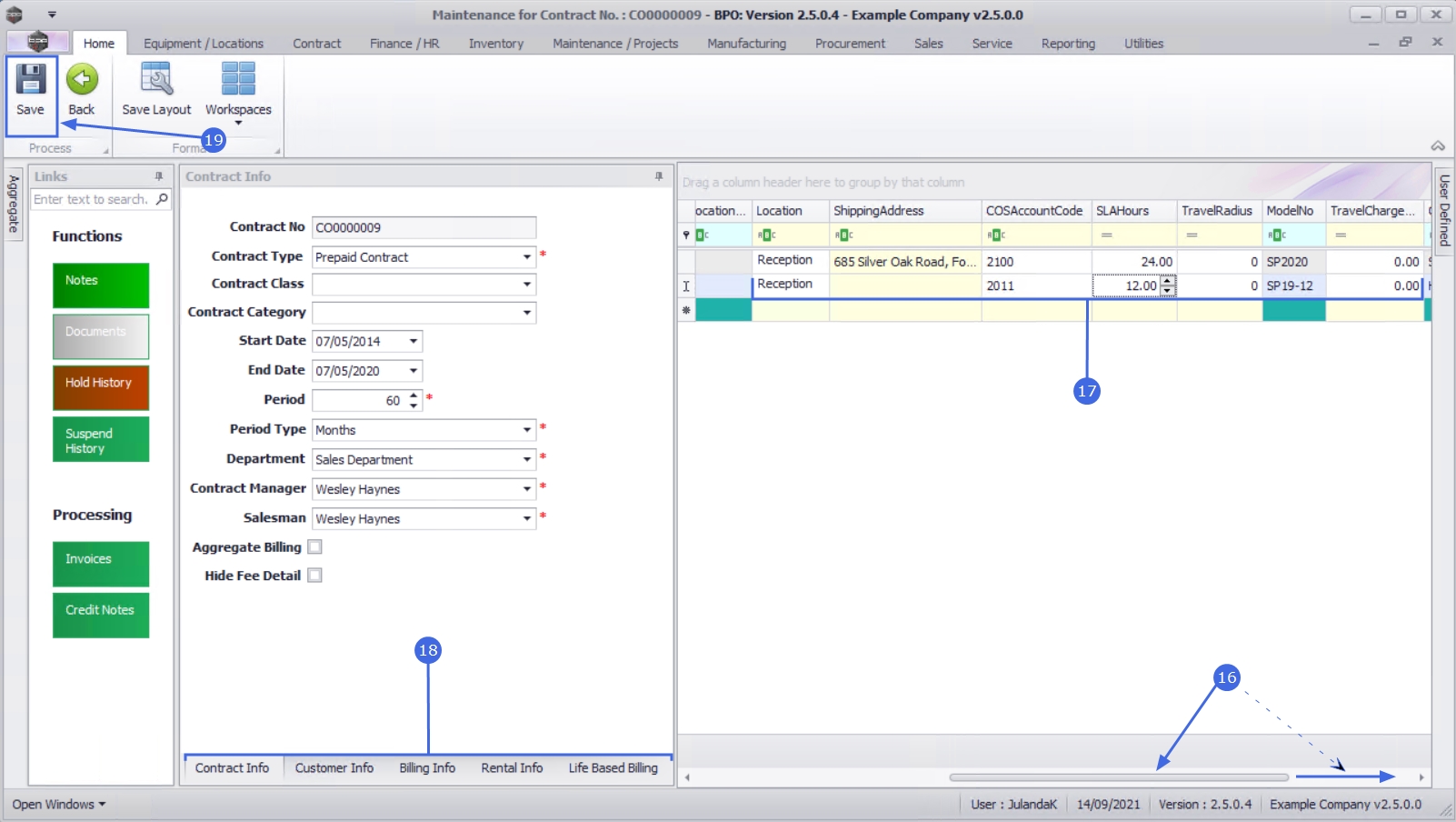 - Complete the Contract Info, Customer Info and Billing Info and Rental Info and Life Based Billing info.