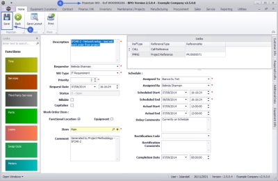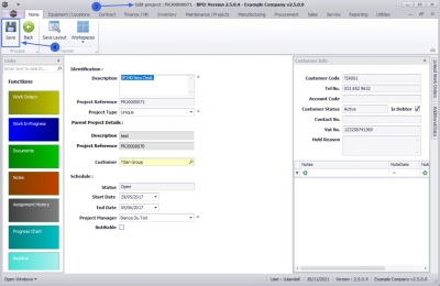 - From here you can add to or edit the Work Order details, Customer Info, the Required Crafts, Additional Data or the Equipment Info for the work order, or update the work order using the Function and Processing tiles.