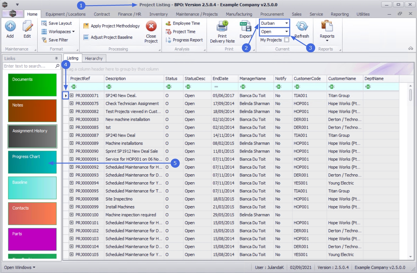 | Ribbon Access: Maintenance / Projects > Projects |