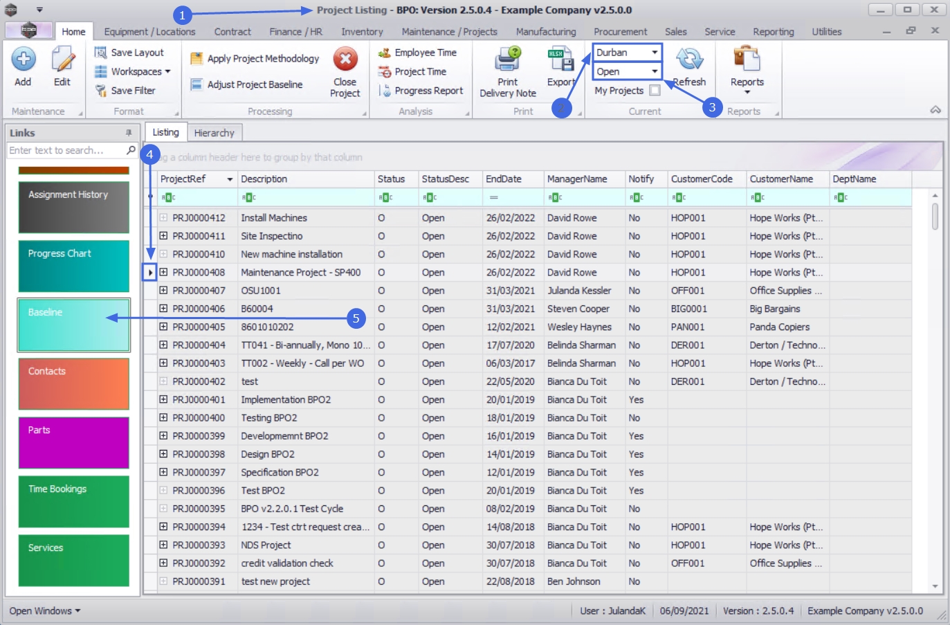 - From this screen you will be able to view the project baseline adjustments made to the selected project.