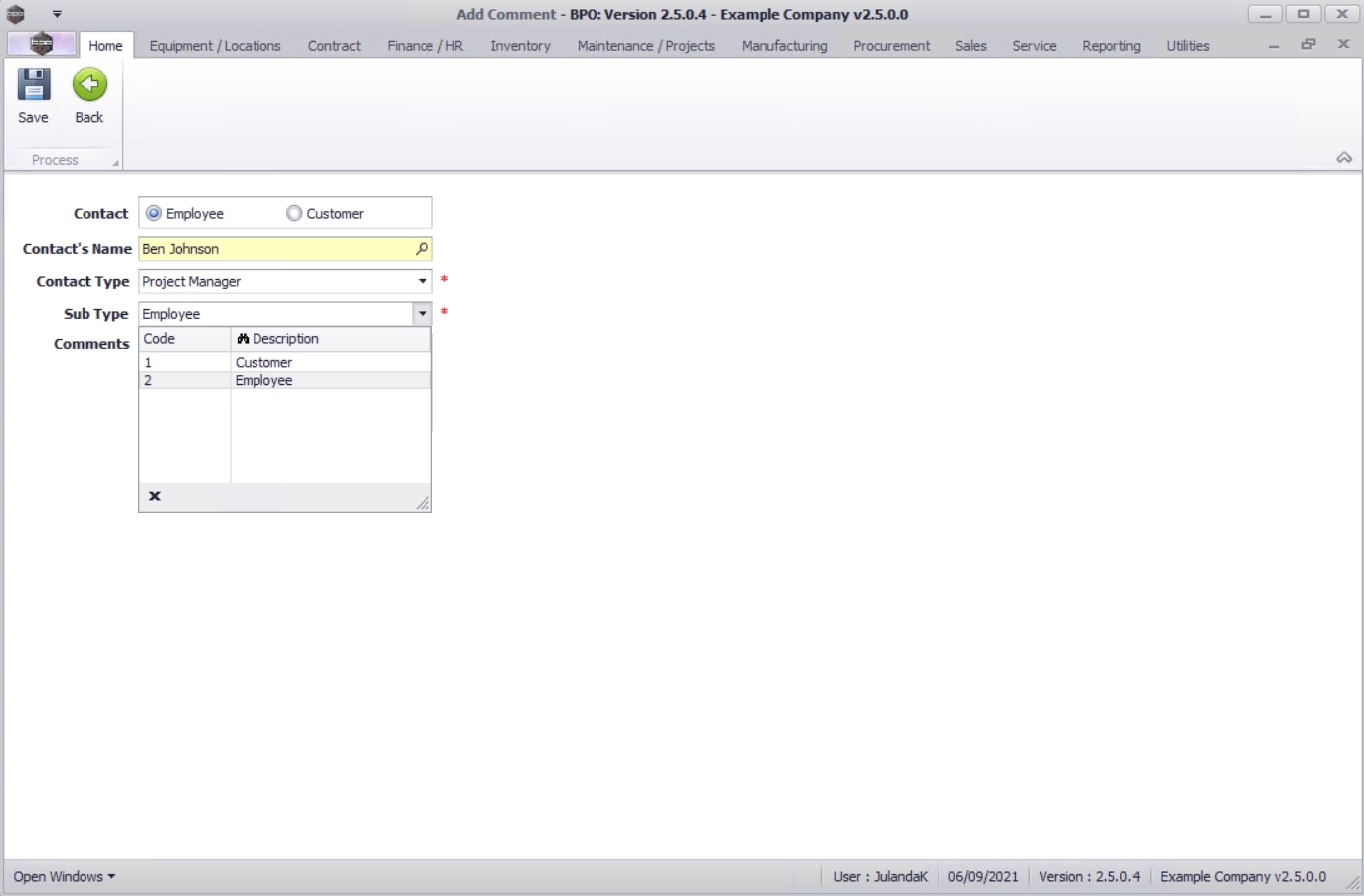 - Comments: This field allows you to add any special comments or instructions related to this contact, for instance where time zones may be important.