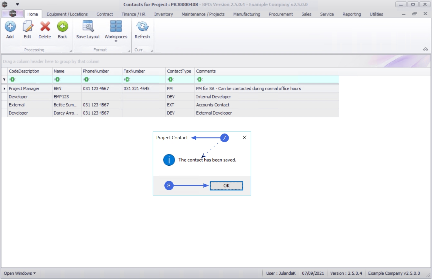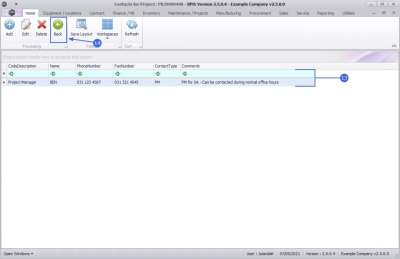 - The Contacts for Project screen has been updated with the new Contact.