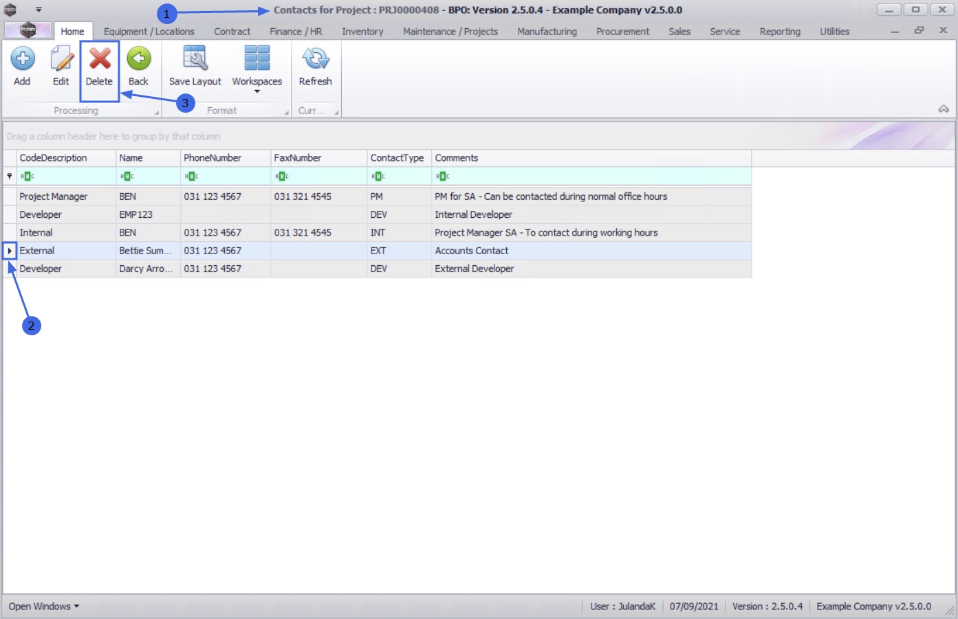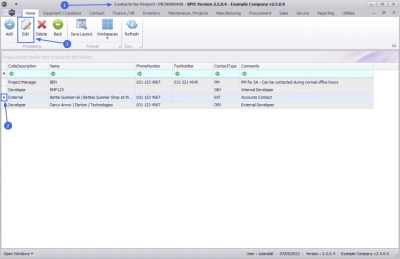 - From the Contacts for Project : PRJ[project ref number] screen,