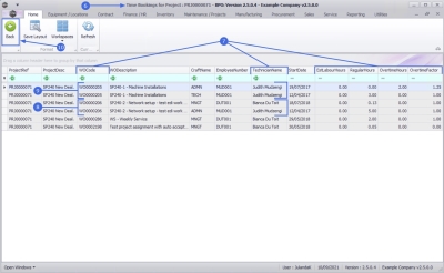 The Time Bookings for Project : [project ref number] screen will be displayed.