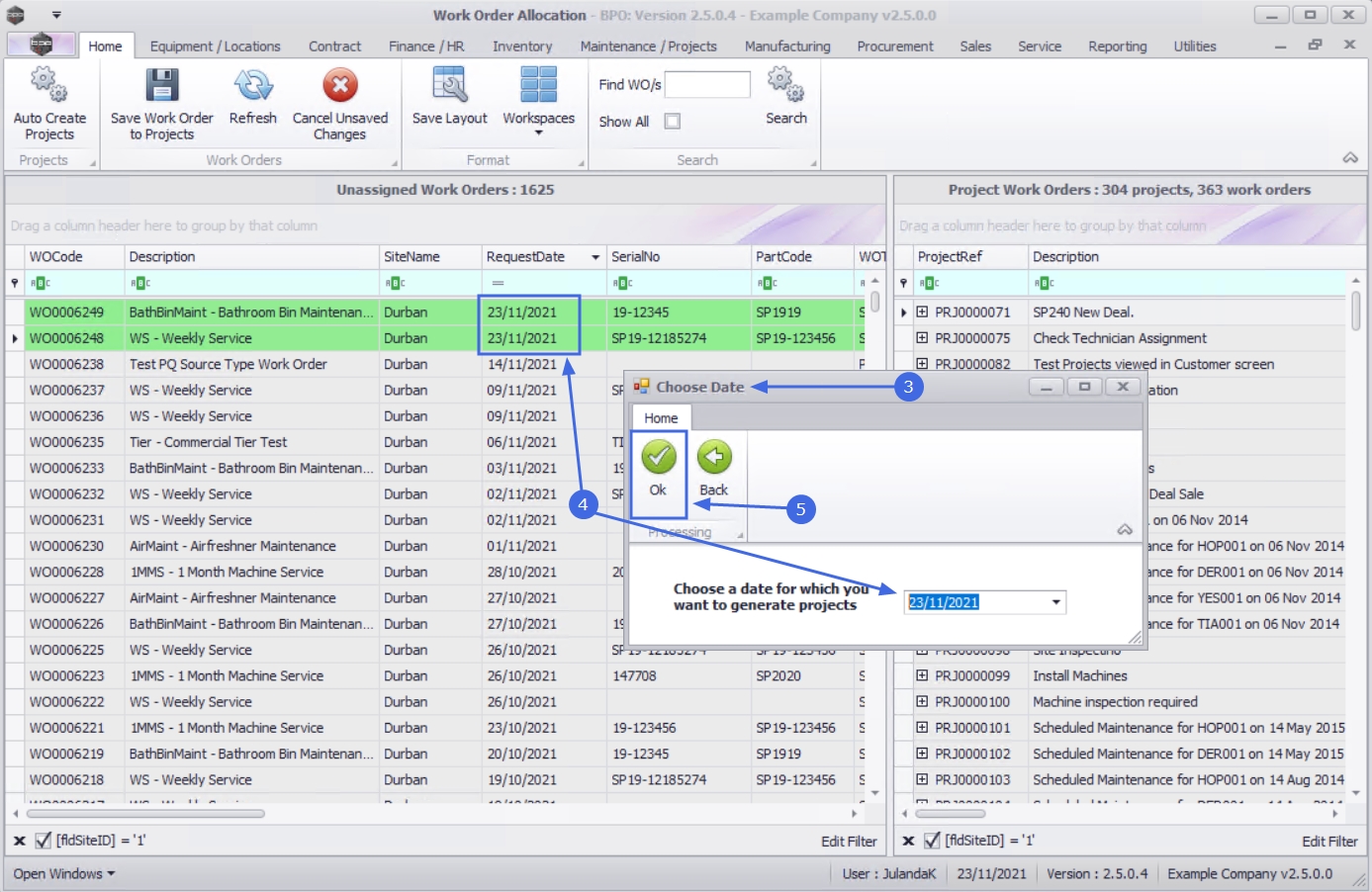 | Ribbon Access: Maintenance / Projects > Work Order Allocation |
