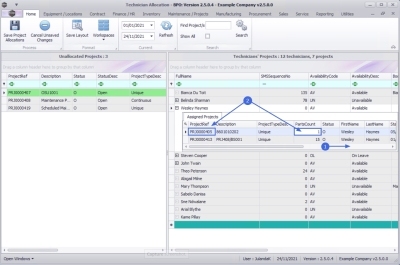 | Ribbon Access: Maintenance / Projects > Technician Allocation |