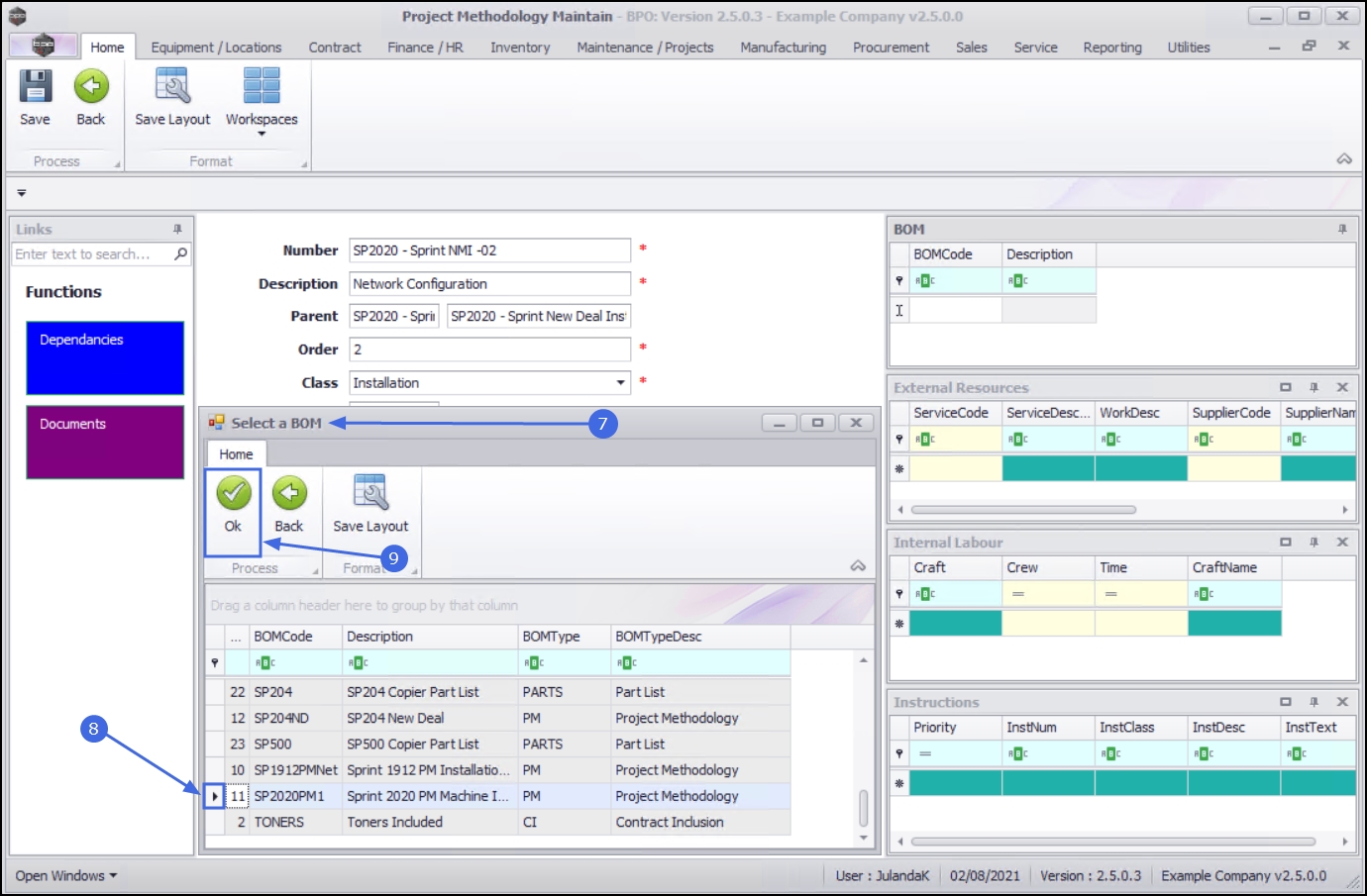 - Click on the row of the BOM you wish to assign to this project methodology layer.