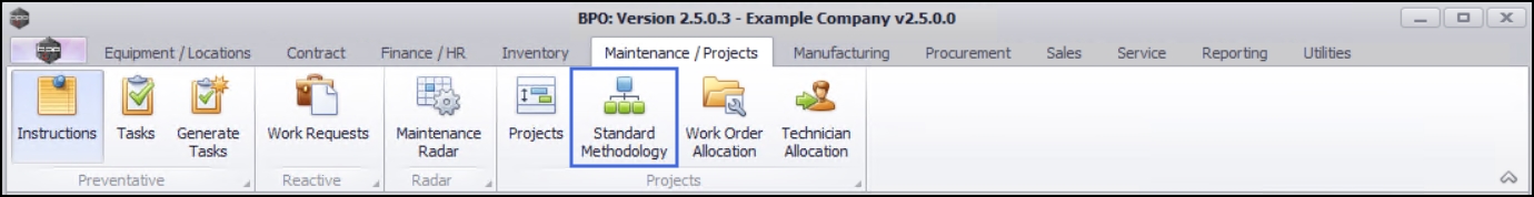 | Ribbon Access: Maintenance / Projects > Standard Methodology |