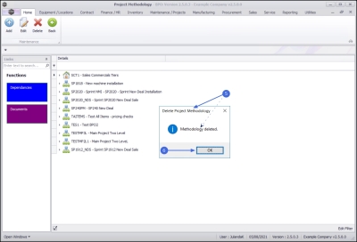 - When you receive the Delete Project Methodology message to confirm that;