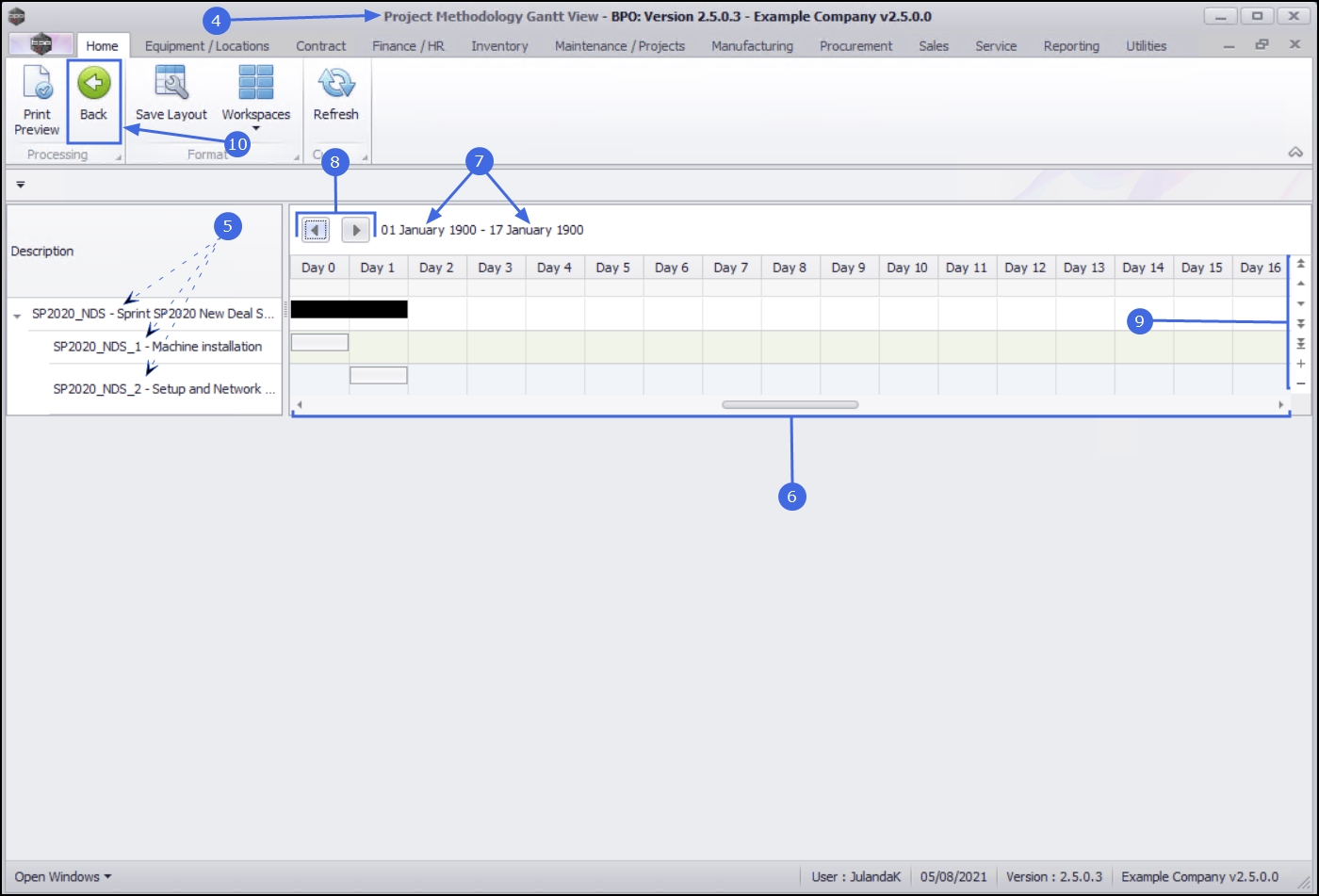 - The forward and back navigation buttons allows you to scroll through the project to view the duration of each layer in the methodology.